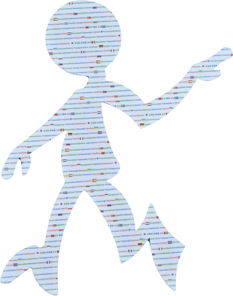 „Vielfalt, Toleranz und Freiheit“ das wollen die Menschen in die Welt vermitteln. Da die Welt viele verschiedene Sprachen spricht, wollten wir diese Botschaft der Bunten Menschen auch in möglichst vielen Sprachen auf den Bunten Menschen bringen, damit jeder in der Welt, der auf einen solchen bunten Menschen trifft auch die Botschaft dahinter versteht.
