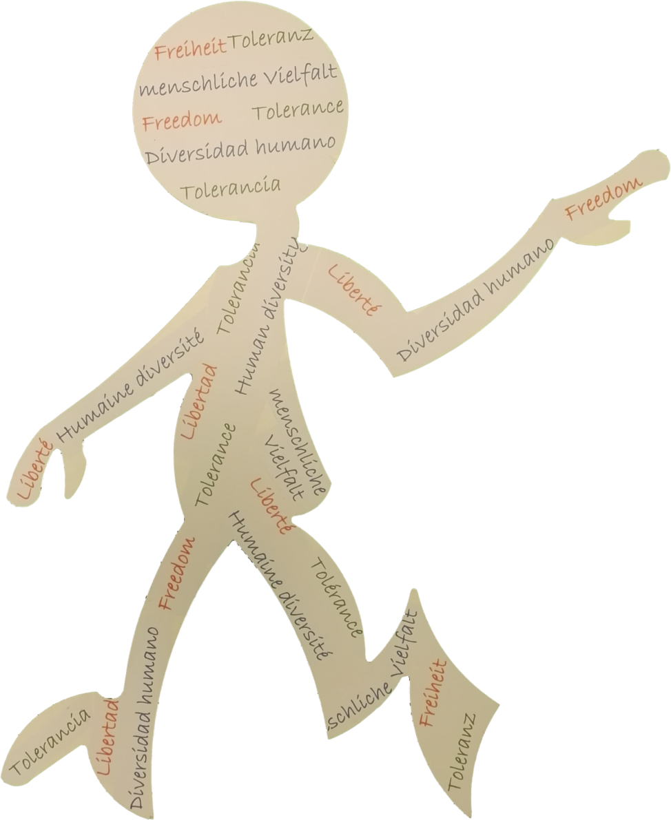 Es steht vielsprachig drauf, wofür die bunten Menschen stehen.