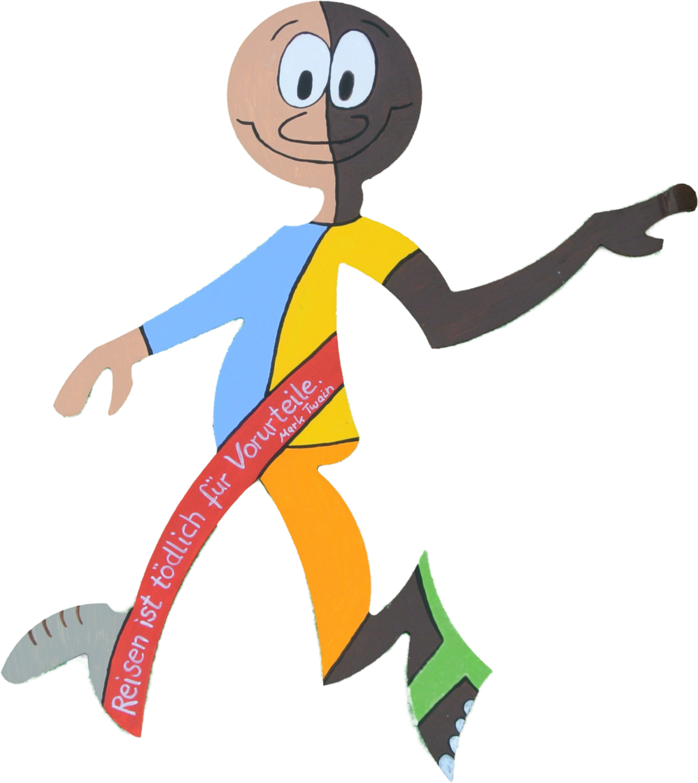Mir gefällt das Thema Reisen, Vielfalt und Toleranz sehr, was ich versucht habe in den bunten Menschen zu verbinden. Ein halb weißer und ein halb schwarzer Mensch mit einer Botschaft…